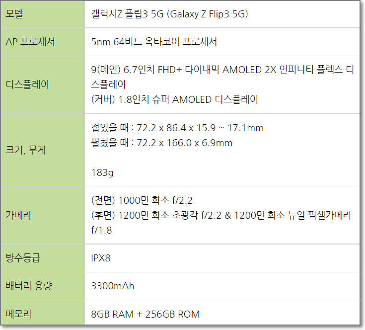 >> 갤럭시Z플립3 특징