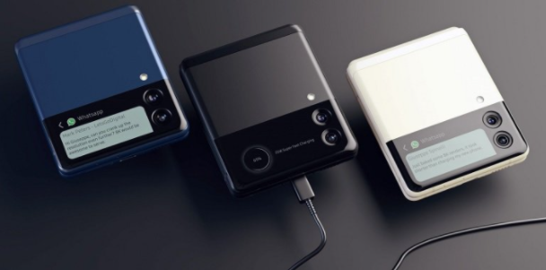 전작에 비해서 늘어난 외부 디스플레이. 기존 1.1인치 커버 디스플레이가 1.83인치로 늘어났습니다, 문자나 카톡이 오면 더 많은 내용을 확인할 수 있습니다. ( 최대 8줄까지 알림 메시지 확인이 가능 )