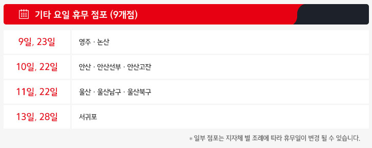 >> 기타 요일 휴무 점포입니다.