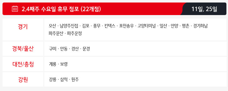 >> 8월 2, 4째주 일요일 휴무 지점